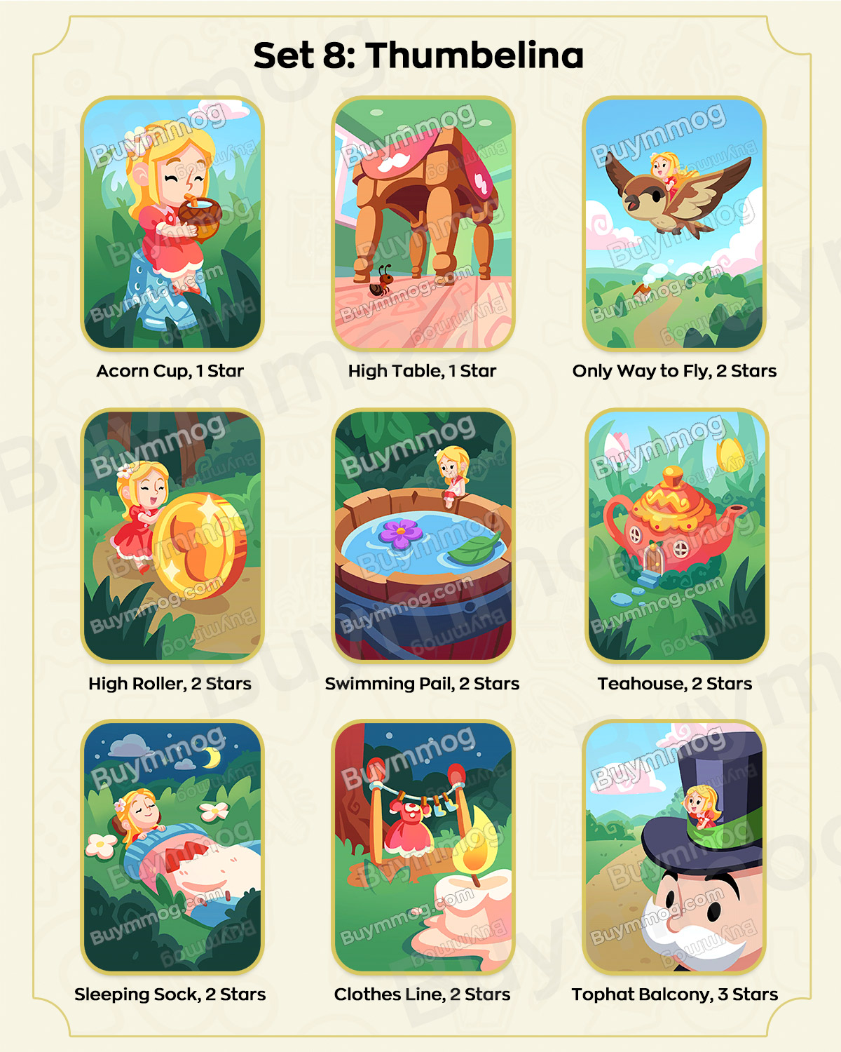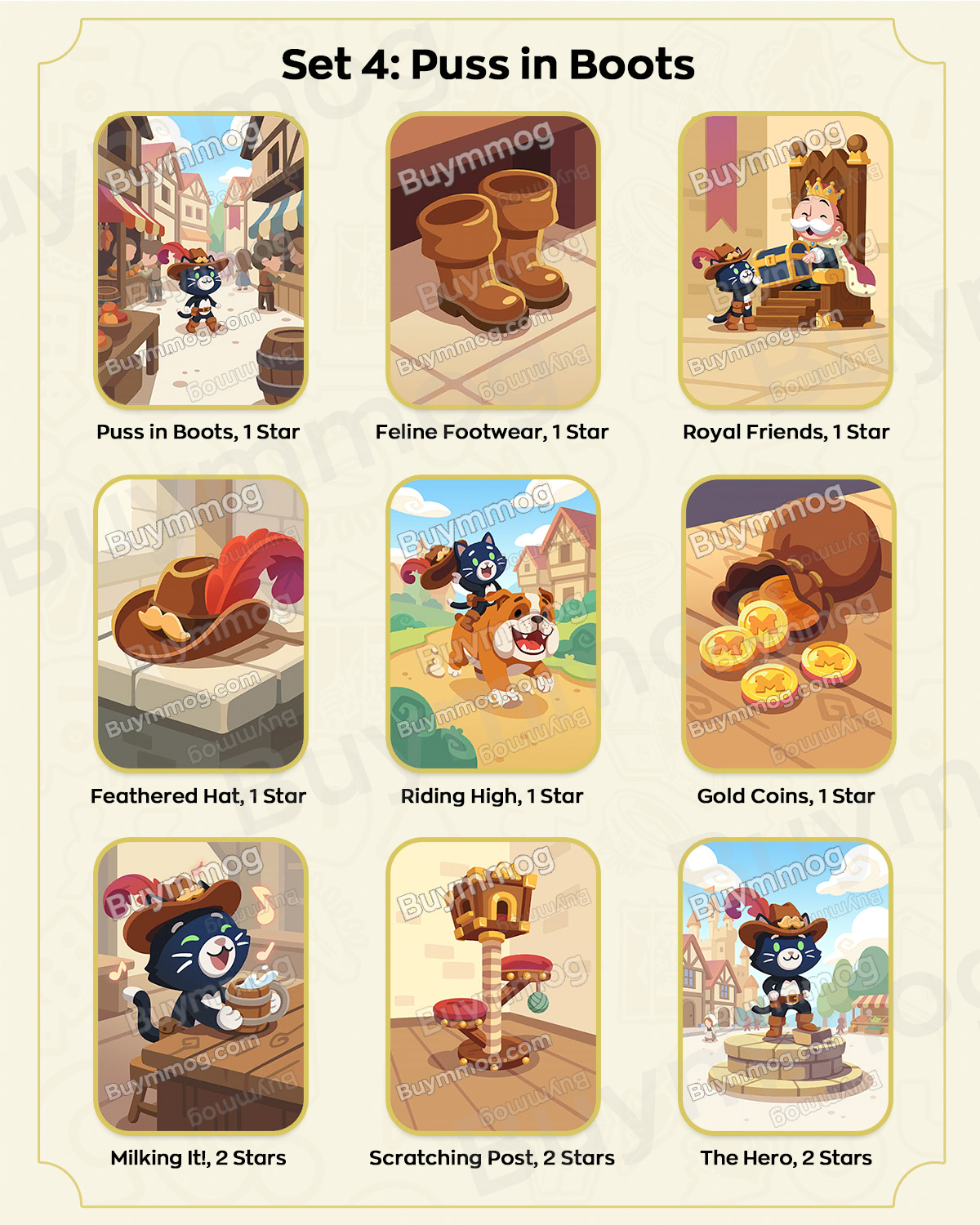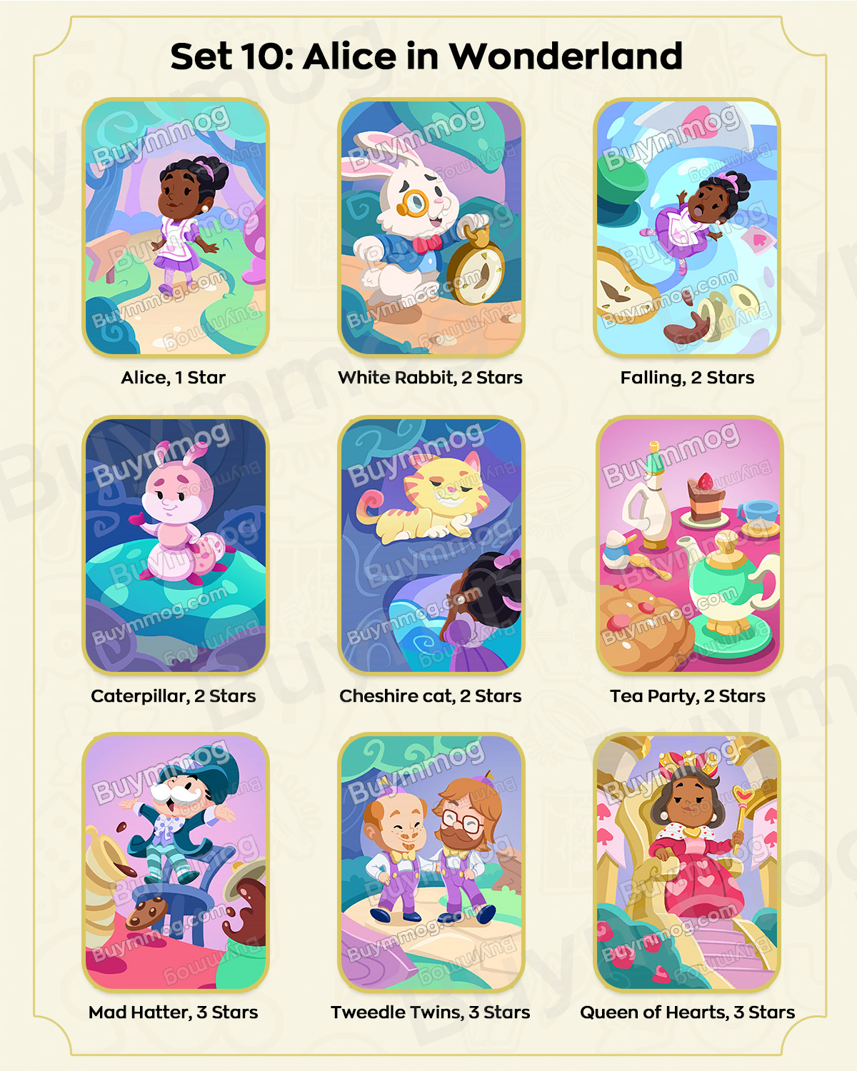 The album contains multiple themed sets. Players collect cards to complete each set and unlock rewards. Below is the placeholder for your card list and sets – you can fill in the specific card names, set details, and special rewards: